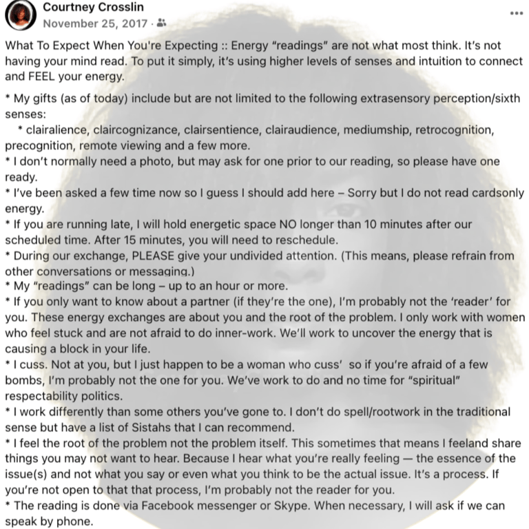 If we have not spoken and you’re confused or unsure about the process. I want to make sure you understand the type of readings I do.